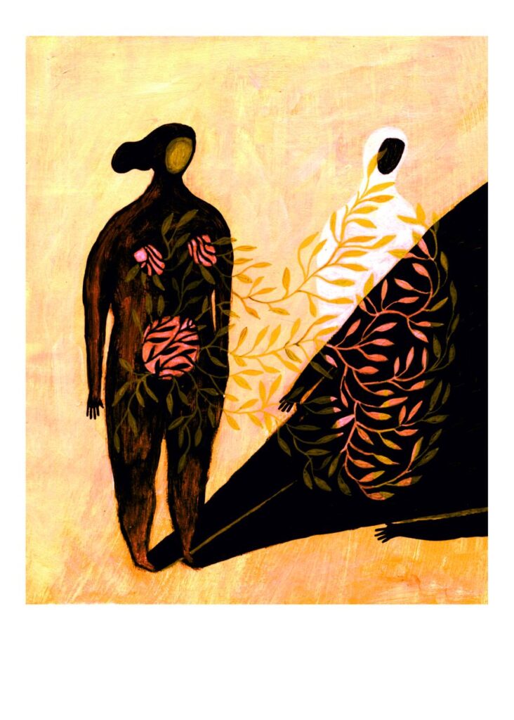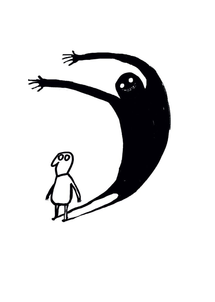 Prace Niki Jaworowskiej-Duchlińskiej stanowią przekonujące dowody na tezę zawartą w sformułowaniu „obraz wart tysiąca słów”. W obrębie jednej, nieprzepełnionej detalami kompozycji mieści moc sprawczą oddziaływania hejtu, niegdyś jakby bardziej niewinnej plotki. „Dymki” wychodzące z ust dwóch postaci jak obłoki kompletnie przesłaniają twarz postaci umieszczonej na dalszym planie. Dynamiczny, przerażający i o wiele większy niż niewielka statyczna postać cień z plakatu do Garbusa we Wrocławskim Teatrze Współczesnym (2019) otwiera też mnogość ścieżek interpretacyjnych. Takich wyzwań intelektualnych z jednej, a z drugiej strony uroczo-dowcipnych lub ostro-satyrycznych komentarzy dotyczących naszego „tuświata” znajdziemy na wystawie znacznie więcej. Jest się nad czym pochylić