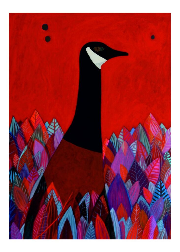 zwierzęcymi głowami, rącze rumaki; są wstęgi rzek, strumieni, ścieżek i dróg – nie wiadomo gdzie się zaczynających i dokąd biegnących. Sylwetki i elementy świata przedstawionego nierzadko pokrywa roślinny ornament. Delikatne listki i wiotkie łodygi podkreślają płynność konturu i decydują o dość graficznym charakterze wykorzystanego w tych ilustracjach akrylowego malarstwa. Podobne w stylu są wizerunki Pegaza, bernikli czy ciszy – prace malarskie prezentowane na wystawie. Sprawiają wrażenie, jakby czekały na swoją książkę, a może ona już nawet istnieje w zaświecie Jaworowskiej-Duchlińskiej… Gdzieś obok