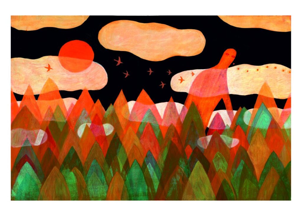 Między światem a zaświatem (Albus, 2022, nagroda w plebiscycie Lokomotywa 2024 w kategorii Od A do Z) i Między niebem a ziemią (Albus, 2024, nagroda w konkursie literackim Planeta Izabelin 2025). Ujmujące opowieści o zaświecie – jedynie przeczuwanej części rzeczywistości, piątej stronie świata, o delikatnych połączeniach między ludźmi a duszami, o uniwersum transcendencji i tajemnicy, wymagały równie niejednoznacznych i niedopowiedzianych ilustracji. Znajdziemy tu postacie o oczach bez źrenic i głowach bez twarzy, o płynnych konturach nieco ektoplazmowych sylwetek. Są ptaki, hybrydyczne sylwetki ze